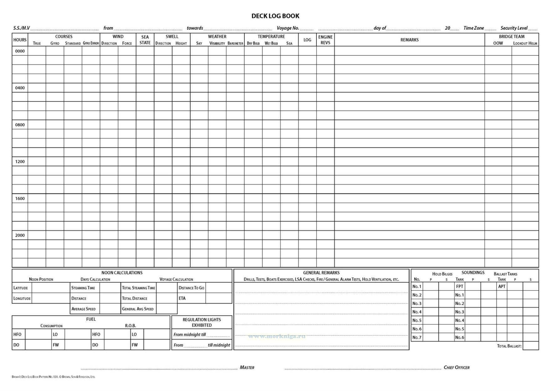 With an updated layout for 2014, Brown’s Deck Log Book allows the modern navigator to record in one place all the routine navigational readings required as part of the Officer of the Watch duties such as; ships course, compass errors and weather conditions. It also allows for the recording of daily Bilge & Ballast soundings as well other deck activities such as say cargo ventilation, which will help prove and keep a record of the crews actions with regard to care of cargo should proof of same ever be required.