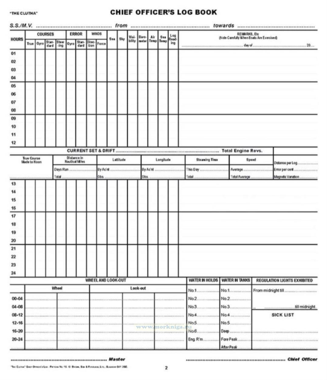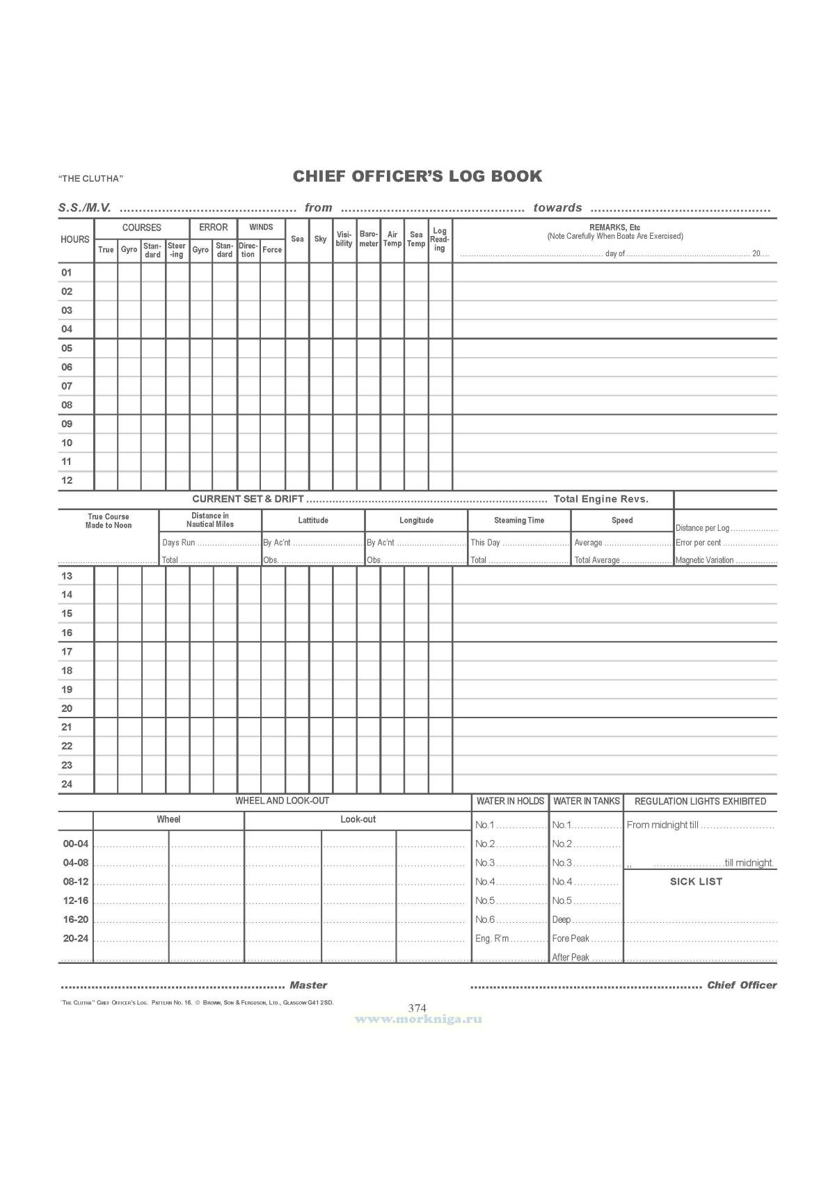 Вахтенный журнал старпома "Clutha" (на 6 месяцев) For Chief Officers. One day's work on a page. Numbered pages