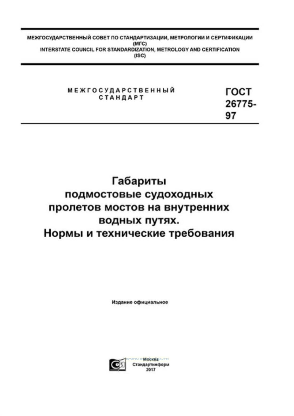 Настоящий стандарт распространяется на вновь проектируемые и реконструируемые (кроме железнодорожных) постоянные мосты на внутренних водных путях. Распространение требований настоящего стандарта на реконструируемые железнодорожные мосты должно рассматриваться индивидуально для каждого конкретного случая.