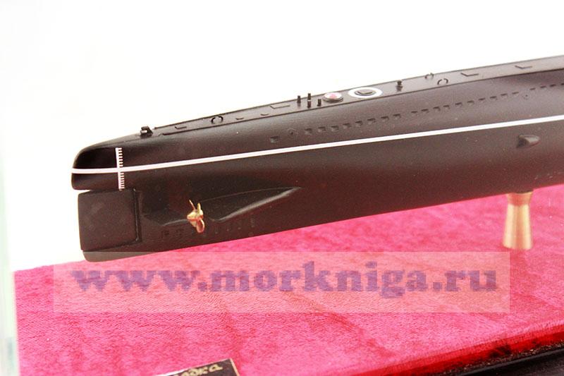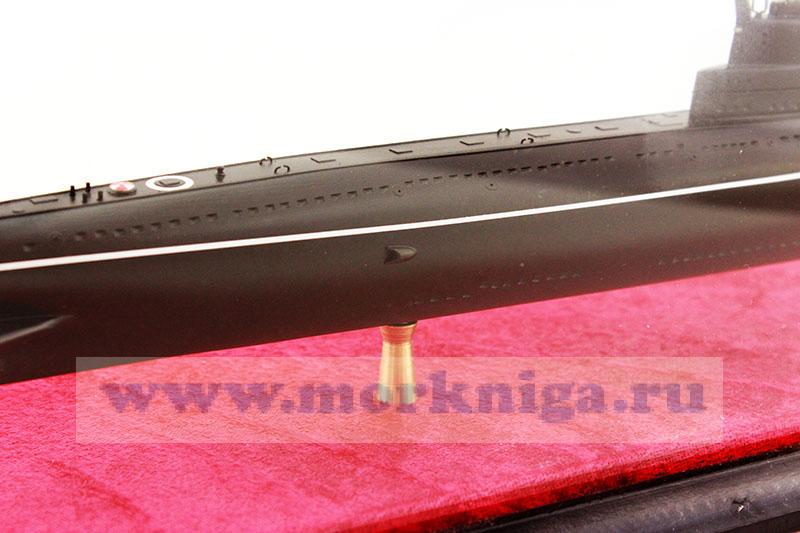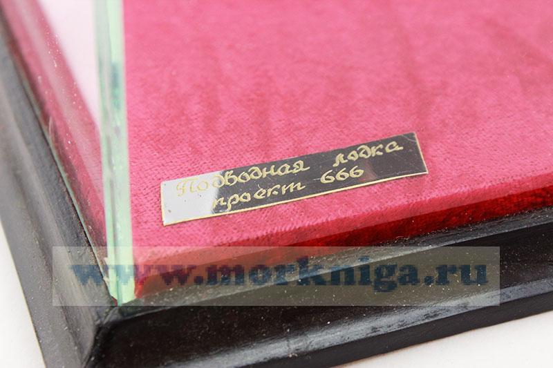 Модель подводной лодки проекта 666 на деревянной подставке. Размеры модели: Длина модели L=55 см Ширина B= 18 см Высота Н=12 см Материал: дерево, метал, пластик Изготовлена частным севастопольским мастером