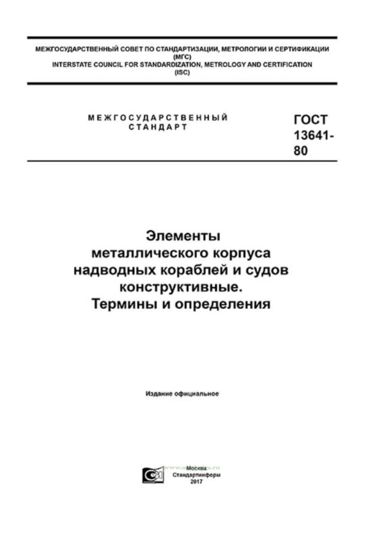 ГОСТ 13641-80 "Элементы металлического корпуса надводных кораблей и судов конструктивные. Термины и определения" утв. постановлением Государственного комитета СССР по стандартам от 29 августа 1980 г. N 4508