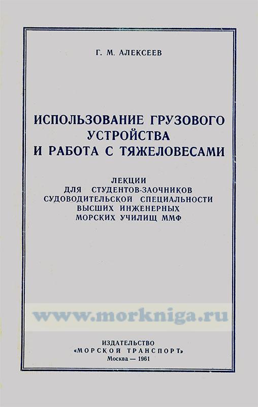 Учебное пособие «Использование грузового устройства и работа с тяжеловесами» предназначено для заочников высших инженерных морских училищ, а также для всех желающих самостоятельно овладеть судоводительской специальностью. В книге рассказано о наиболее распространенных на транспортном флоте грузовых устройствах - грузовых стрелах, приведены графический и аналитический методы расчета прочности, что имеет большую практическую ценность.
