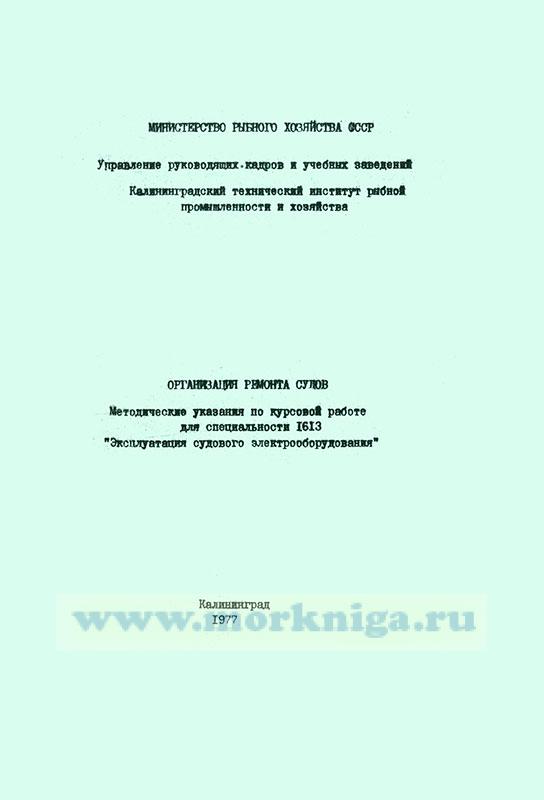 Методические указания предназначены для написания курсовой работы по теме "Организация ремонта судов” для курсантов электро- механиков.