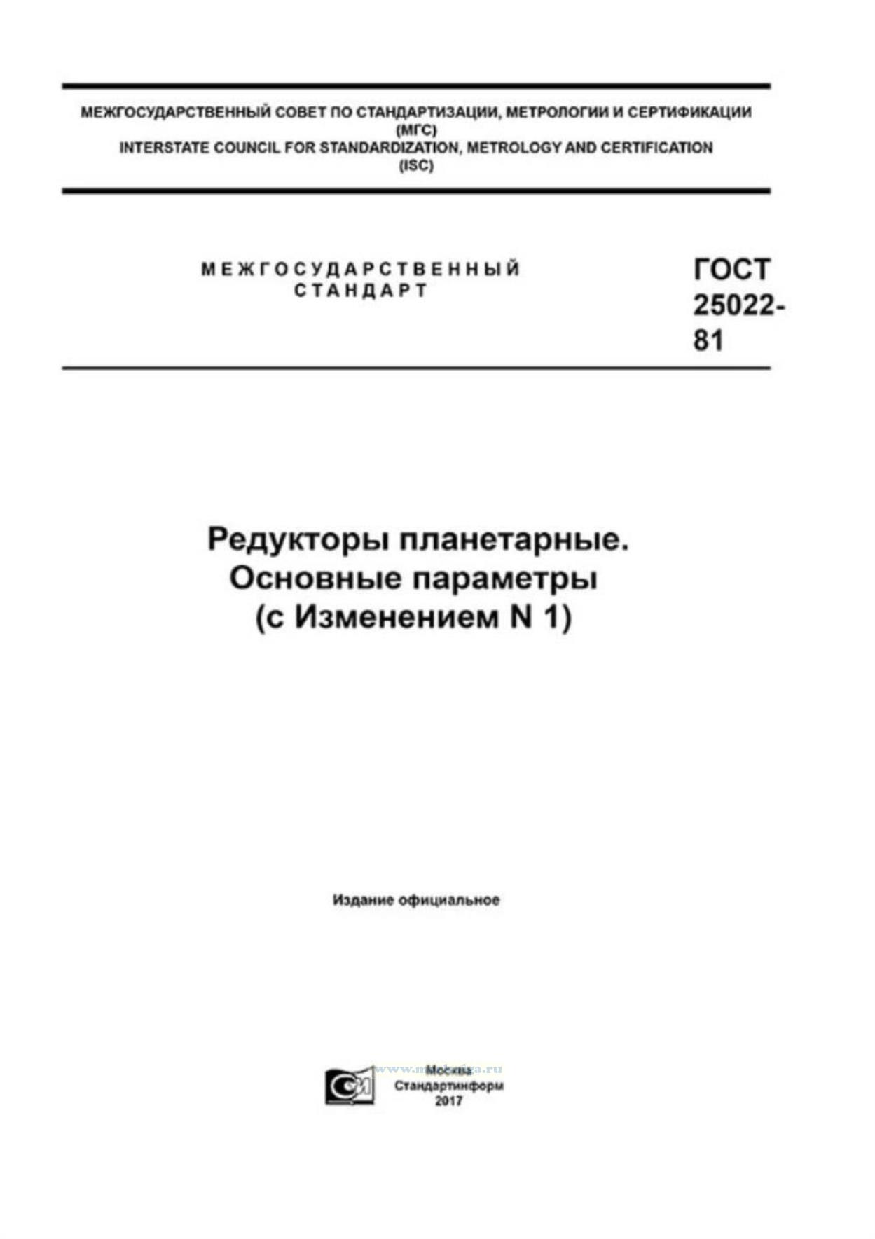 Редукторы планетарные. Основные параметры (с Изменением N 1)