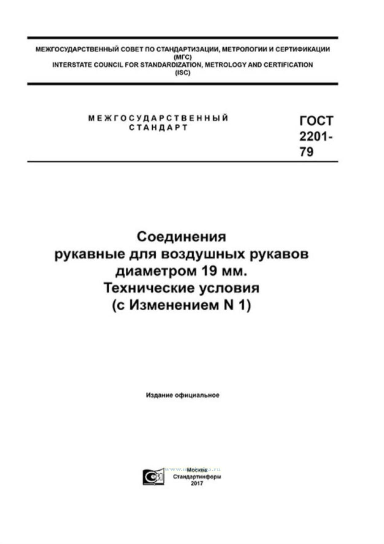 Настоящий стандарт распространяется на рукавные соединения для воздушных рукавов диаметром 19 мм, предназначенные для герметичного соединения рукавов между собой, а также для присоединения рукавов к штуцерам жестких судоподъемных понтонов, земснарядов, пневматических инструментов.