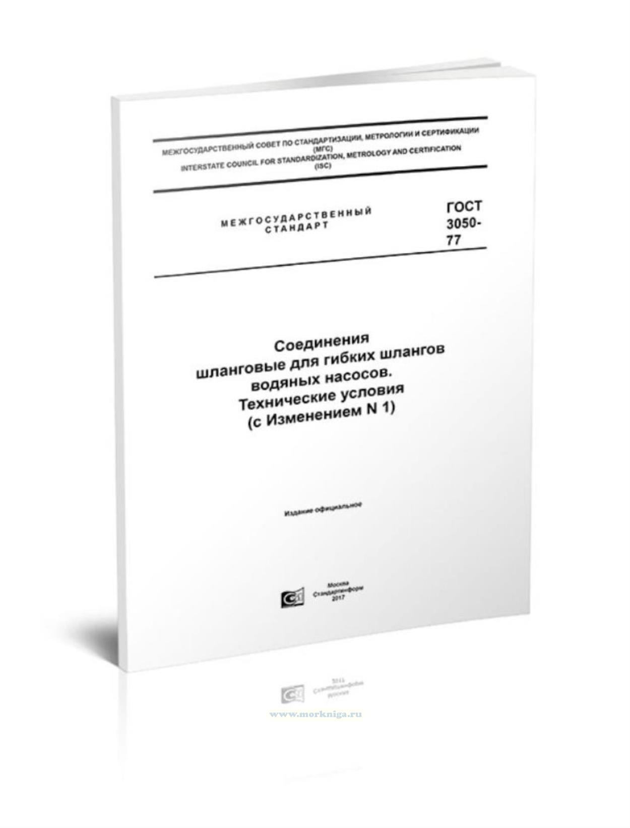 ГОСТ 3050-77 Соединения шланговые для гибких шлангов водяных насосов. Технические условия (с Изменением N 1)