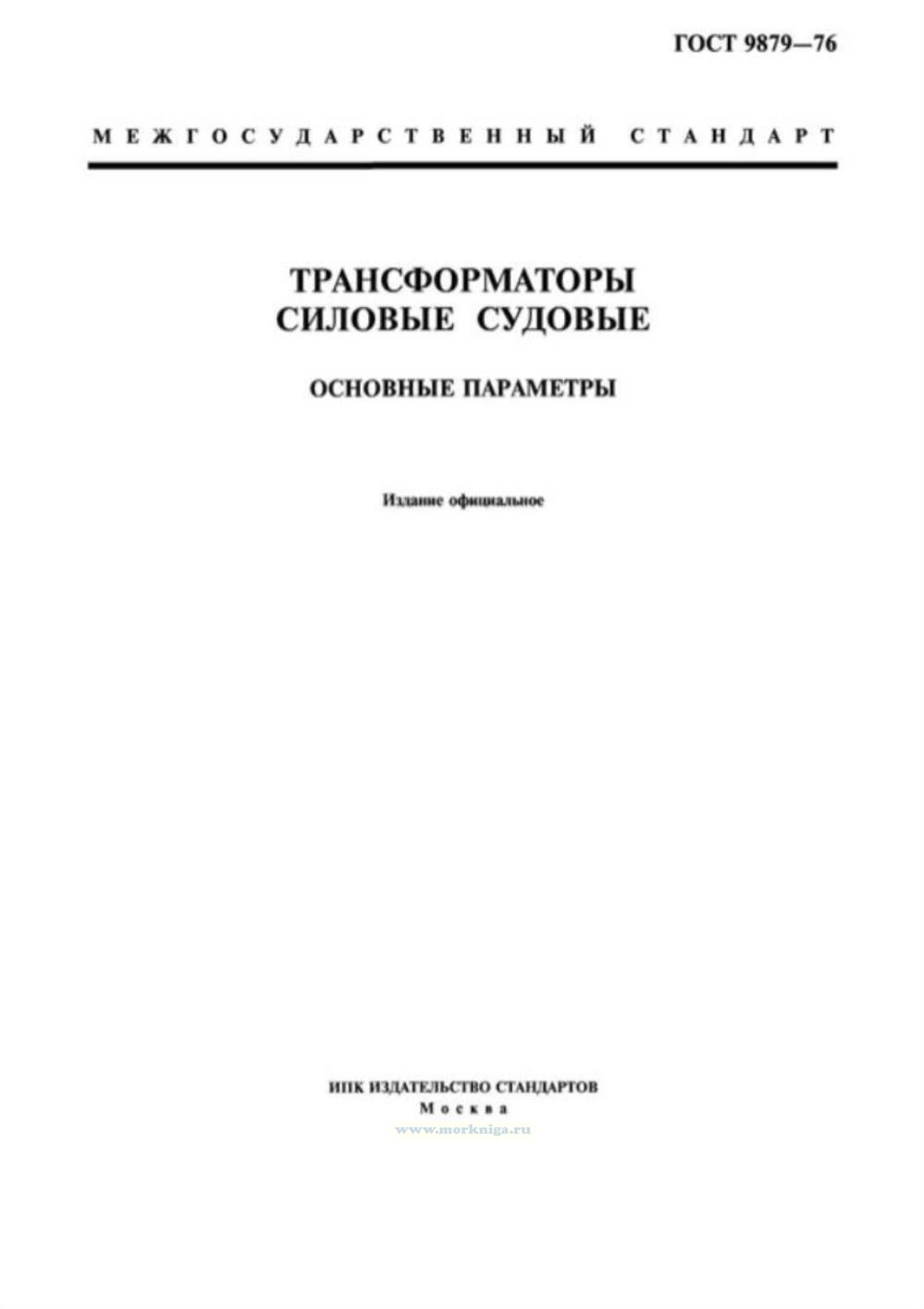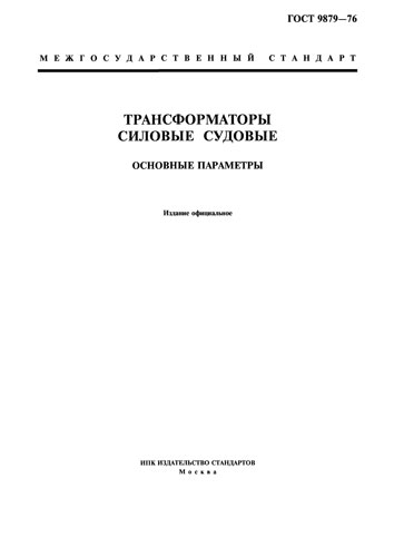 ГОСТ 9879-76 "Трансформаторы силовые судовые. Основные параметры" утв. Постановлением Государственного комитета стандартов Совета Министров СССР от 28.04.76 № 969.