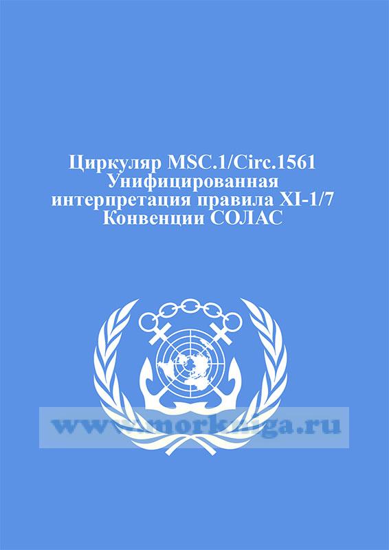 Циркуляр MSC.1/Circ.1561 Унифицированная интерпретация правила XI-1/7 Конвенции СОЛАС включена в Сборник № 56 резолюций ИМО/ Collection No.56 of IMO Resolutions.