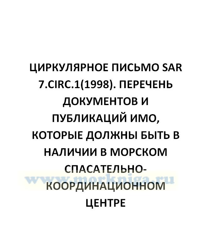 Циркулярное письмо SAR 7.Circ.1(1998). Перечень документов и публикаций ИМО, которые должны быть в наличии в морском спасательно-координационно