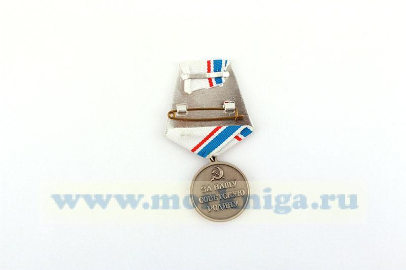 Медаль изготавливается из металла серебристого цвета, имеет форму круга диаметром 32 мм с выпуклым бортиком с обеих сторон. На лицевой стороне медали: в центре — рельефное изображение якоря; рельефная надпись: по кругу над якорем — «Морское братство-нерушимо!»; ниже — в две строки: «СССР ВМФ». На оборотной стороне медали: в центре — рельефное изображение серпа и молота; рельефная надпись: «ЗА НАШУ СОВЕТСКУЮ РОДИНУ»