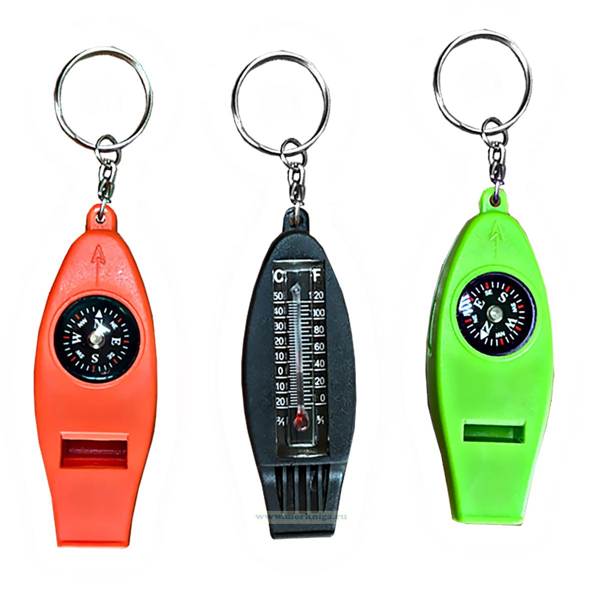 Удобный и компактный многофункциональный свисток станет незаменимым помощником в путешествиях, походах и на воде. В одном корпусе совмещены сразу несколько полезных инструментов: свисток, термометр, компас и лупа.