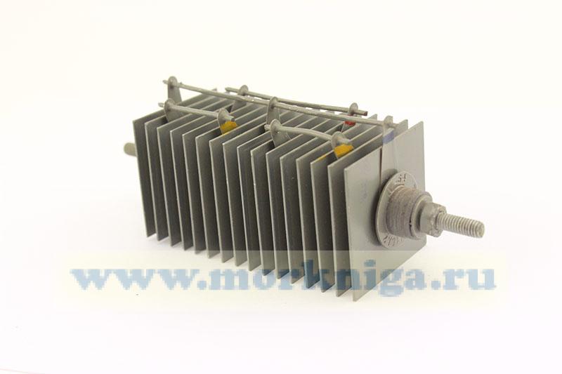 Селеновый выпрямитель состоит из алюминиевой или железной пластины, покрытой с одной стороны слоем кристаллического селена 60 мкм, являющимся одним из электродов с дырочной (p-тип) проводимостью. Для создания второго электрода на поверхность селена наносится сплав из олова, кадмия и висмута. При вступлении в реакцию (диффузия) селена и кадмия образуется тонкий слой селенида кадмия с электронной (n-тип) проводимостью. На границе между селеном селенидом кадмия образуется p-n-переход. Для улучшения свойств селеновые пластины подвергают электрической формовке путем длительного приложения постоянного напряжения в обратном направлении.