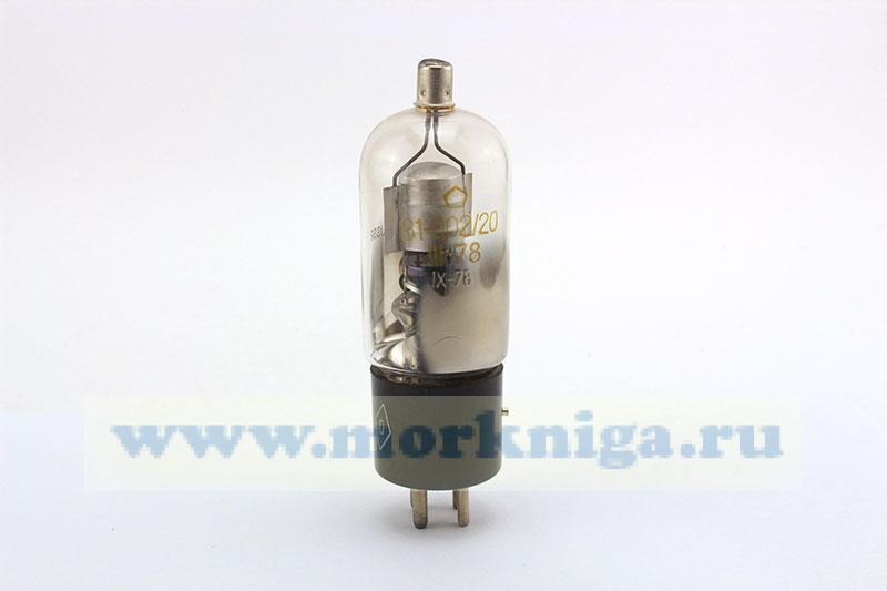 Лампа В1-0,02/20- высоковольтный кенотрон с вольфрамовым прямонакальным карбидированным катодом, предназначенный для работы в различных радиоэлектрических специальных устройствах в непрерывном и импульсном режимах.
