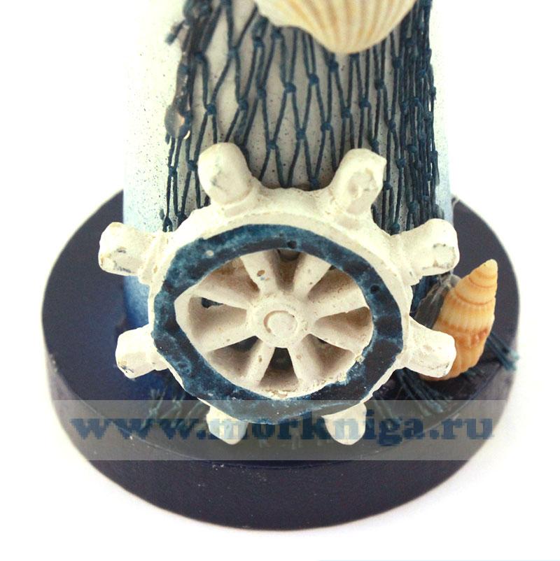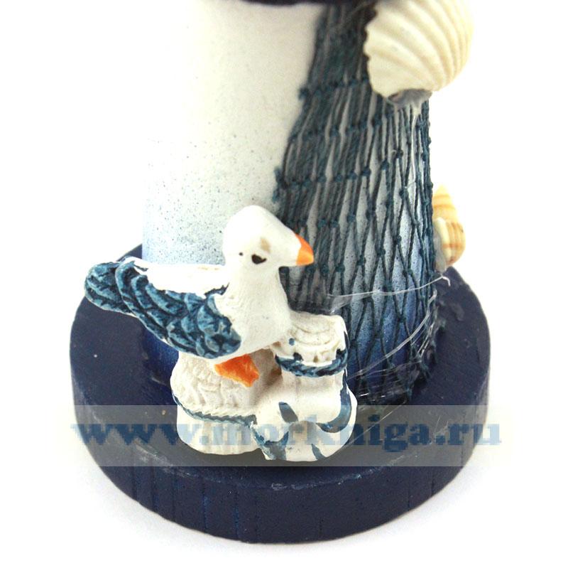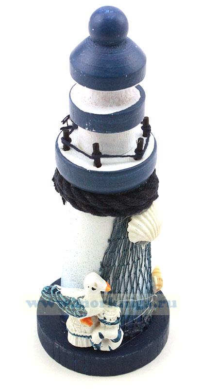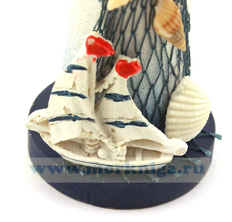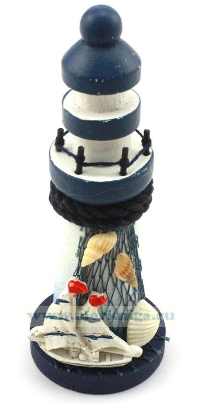 Маяк изготовлен из дерева, он отлично впишется в интерьер морского стиля и послужит оригинальным подарком. Приятно взять в руки Декорирован рыболовной сетью и ракушками. Размер: 13 х 5 см Сделано в КНР