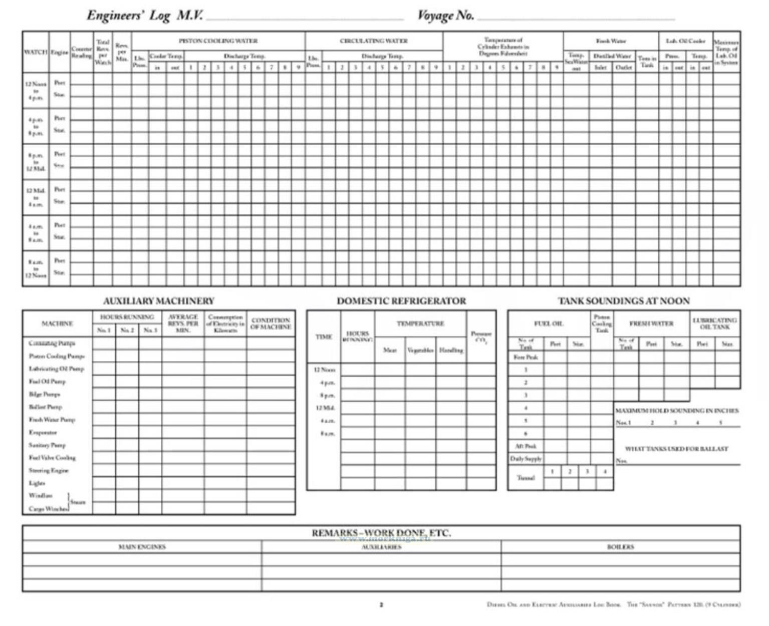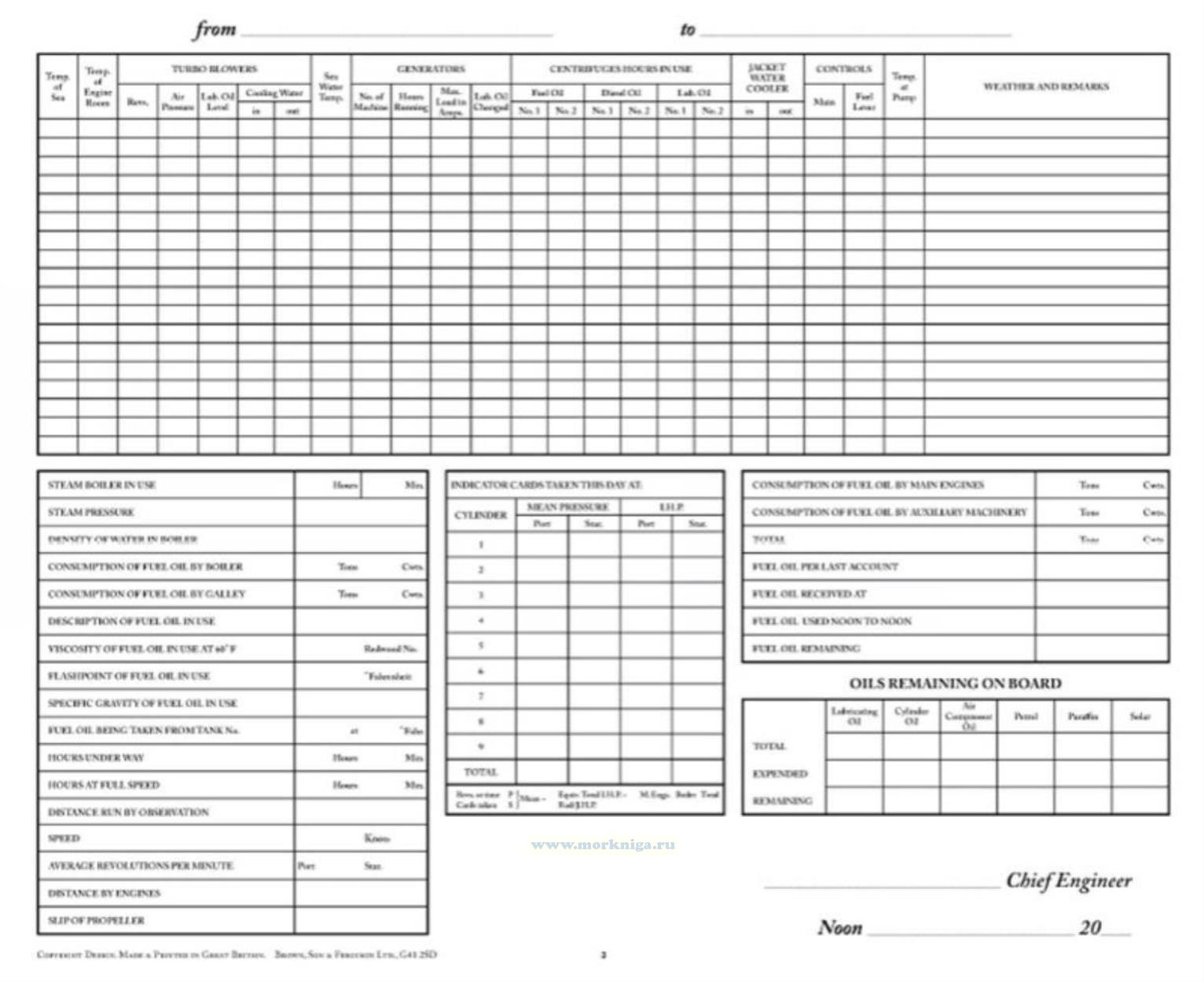 Журнал рассчитан на 3 месяца. For Chief Engineers. Diesel and Electric Auxiliaries. 9-Cylinders. Numbered pages