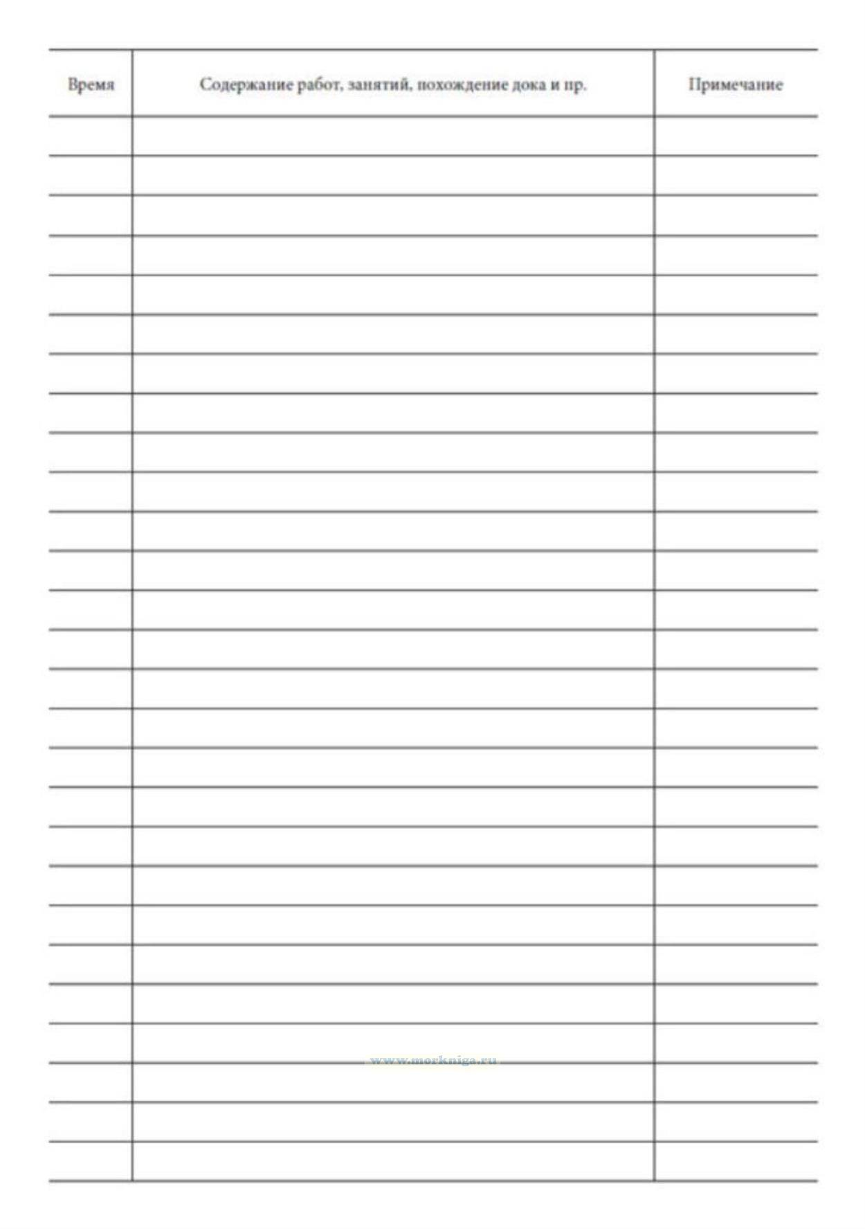 Содержание работ, занятий, похождение дока, дежурной службой заносятся в вахтенный журнал.