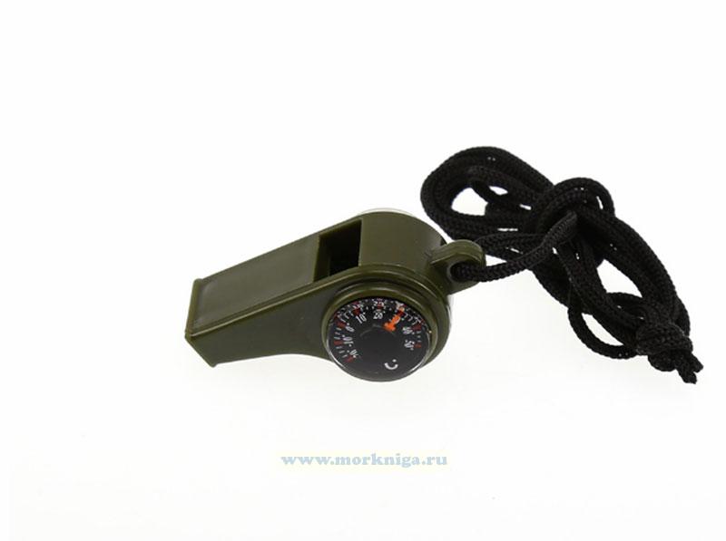 Многофункциональный свисток, в который входит компас и термометр Подходит для активного отдыха, туризма и как аварийно-спасательное имущество на маломерных судах.