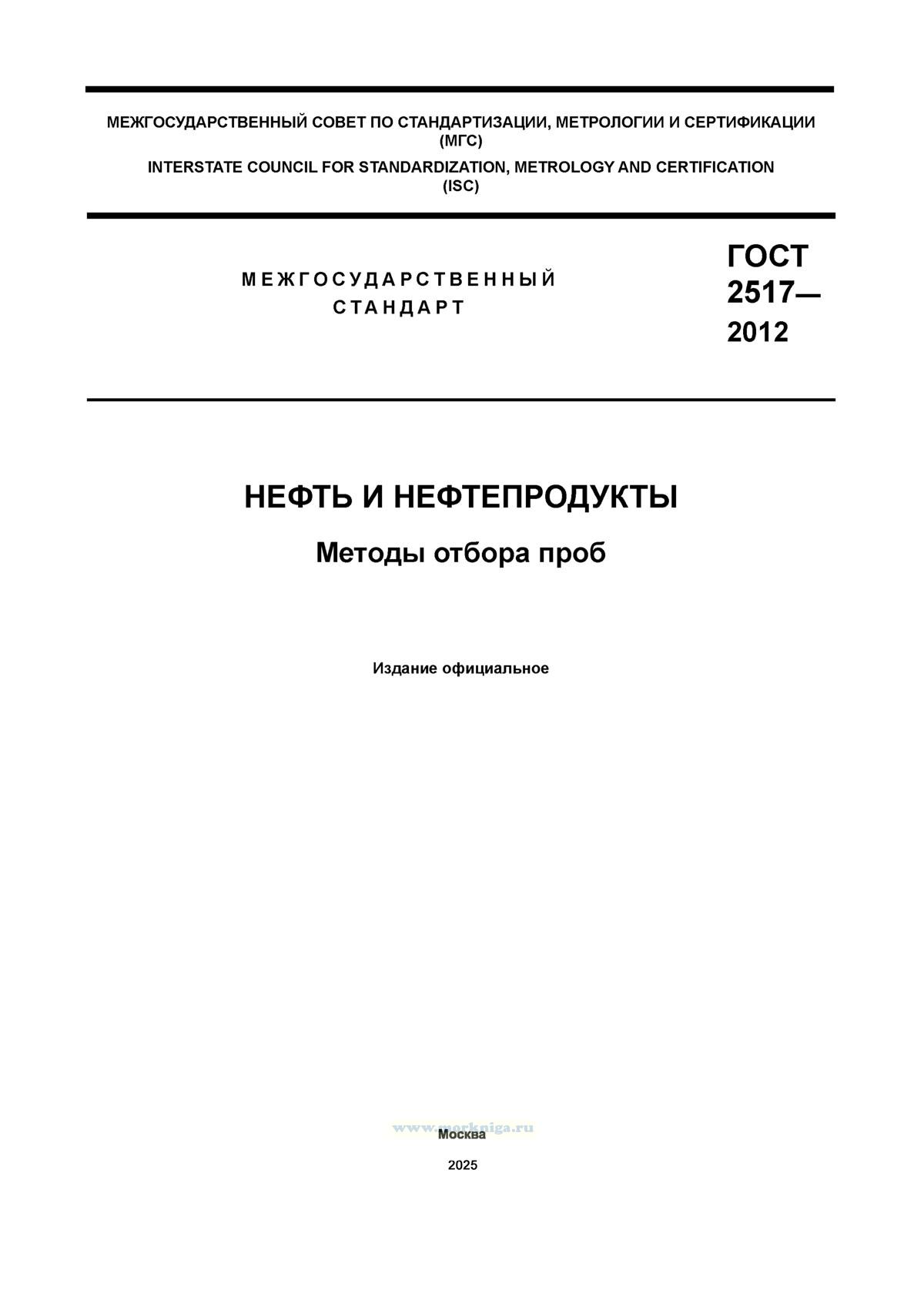 Приказом Федерального агентства по техническому регулированию и метрологии от 29 ноября 2012 г. № 1448-ст межгосударственный стандарт ГОСТ 2517-2012 "Нефть и нефтепродукты. Методы отбора проб" введен в действие в качестве национального стандарта Российской Федерации с 1 марта 2014 г.