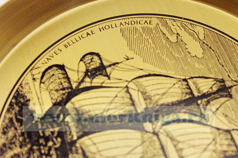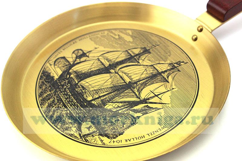 На сковороде нанесено изображение голландского военного парусного корабля.