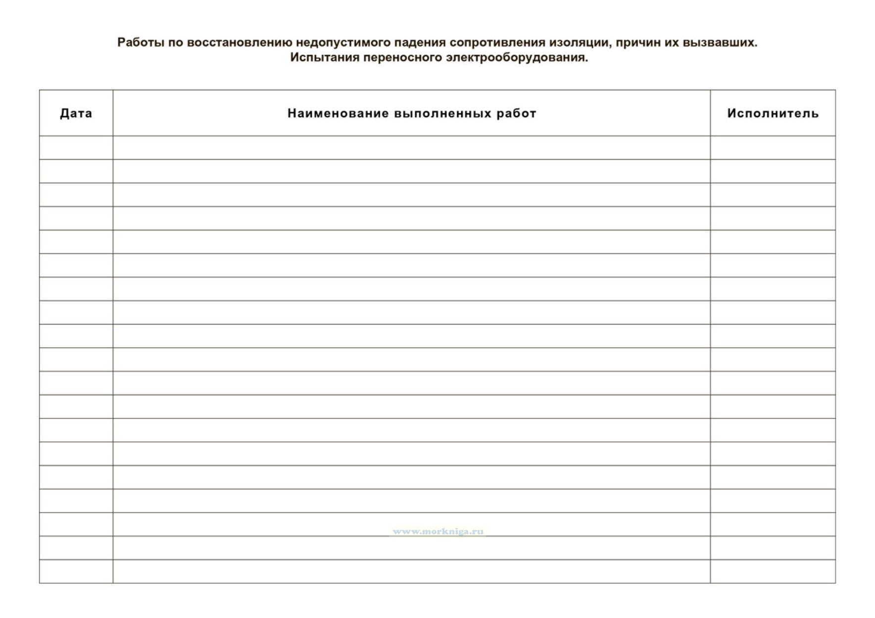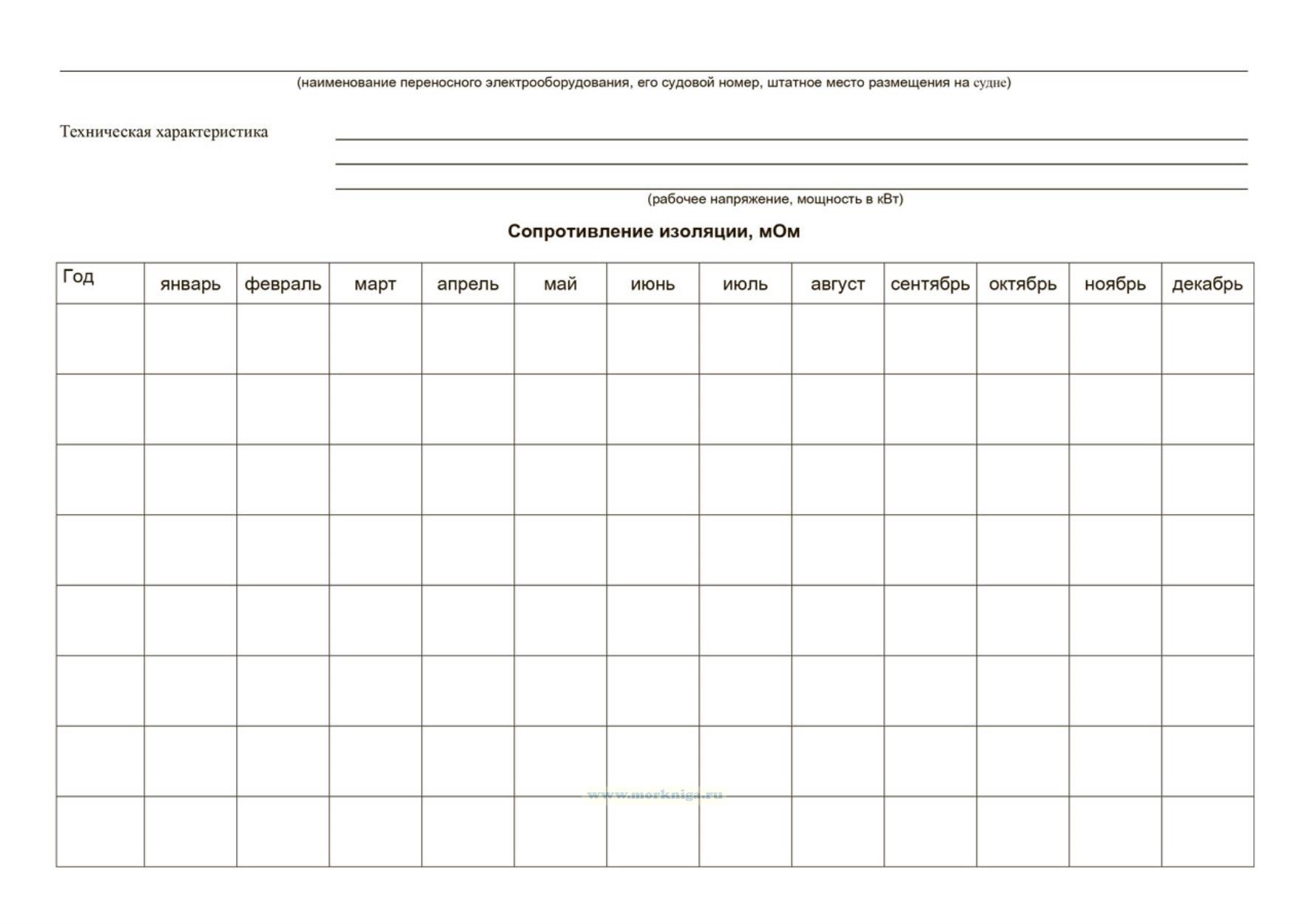 8. На каждое переносное электрооборудование заводится отдельный лист приведенной формы. Запрещается в разделе замера Rиз записывать слова «норма», «исправно», необходимо записывать конкретную величину Rиз.