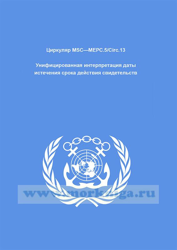 Циркуляр MSC—МЕРС.5/Сirc.13 Унифицированная интерпретация даты истечения срока действия свидетельств включен в Сборник № 57 резолюций ИМО/ Collection No.57 of IMO Resolutions.