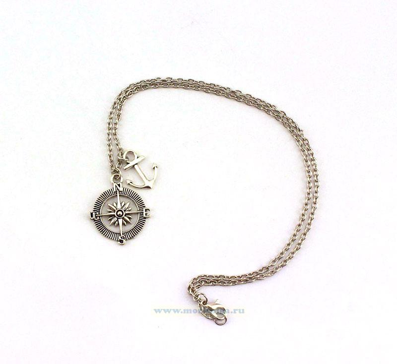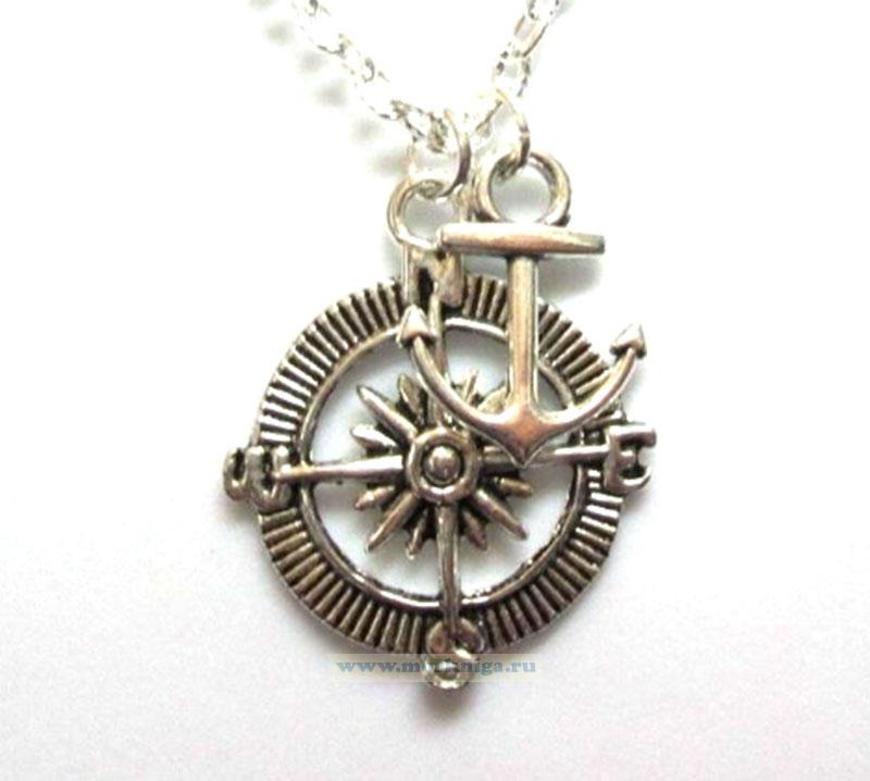 Кулон "Роза ветров и якорь" на цепочке - оригинальное украшение с необычным дизайном. Оригинальность изделию придает наличие 2 подвесок - розы ветров и якоря.