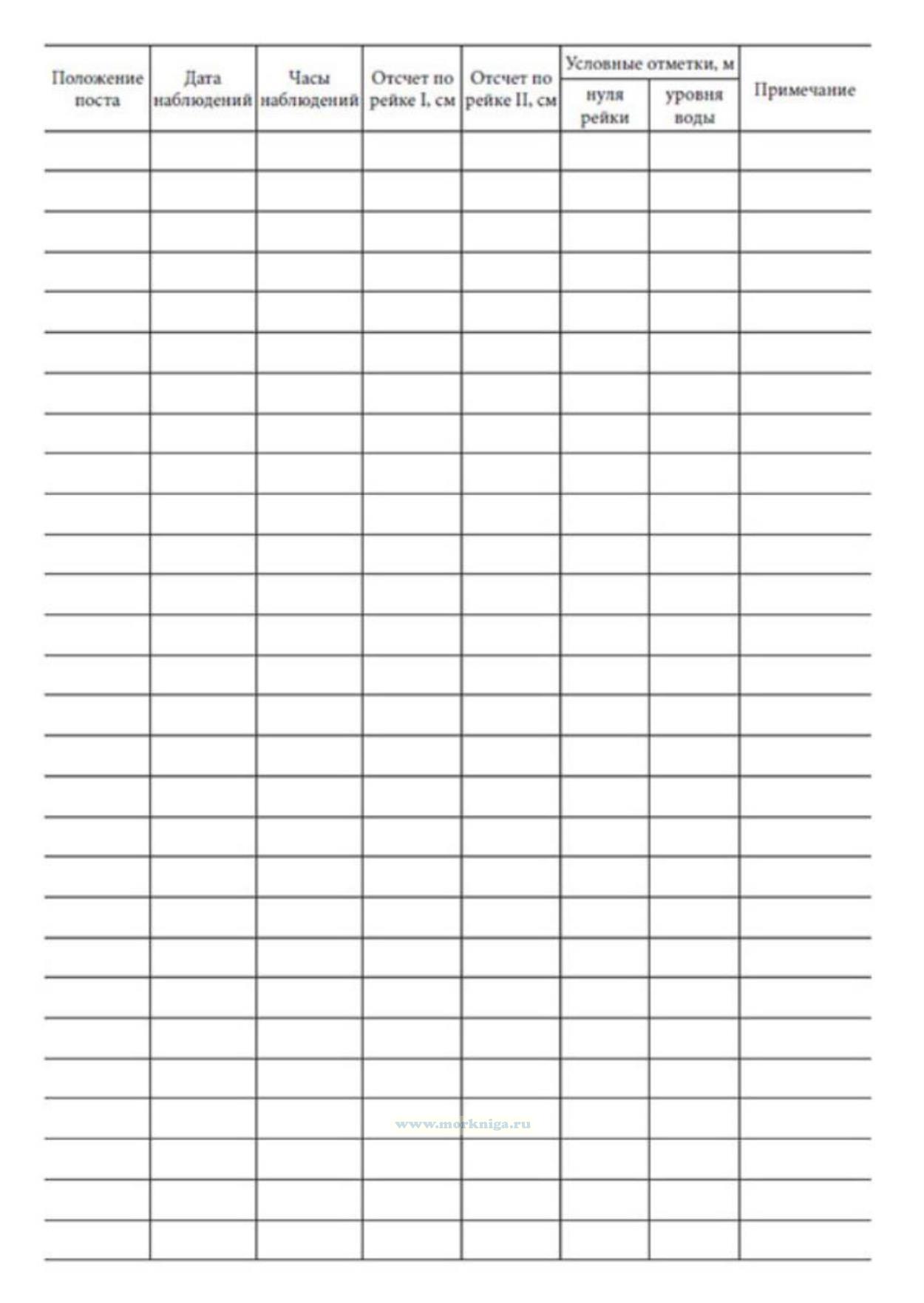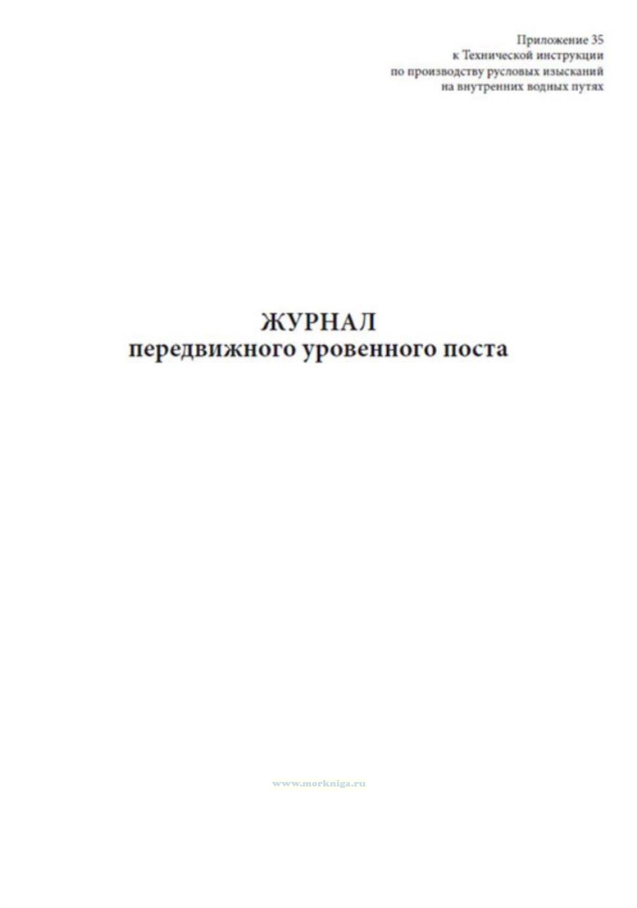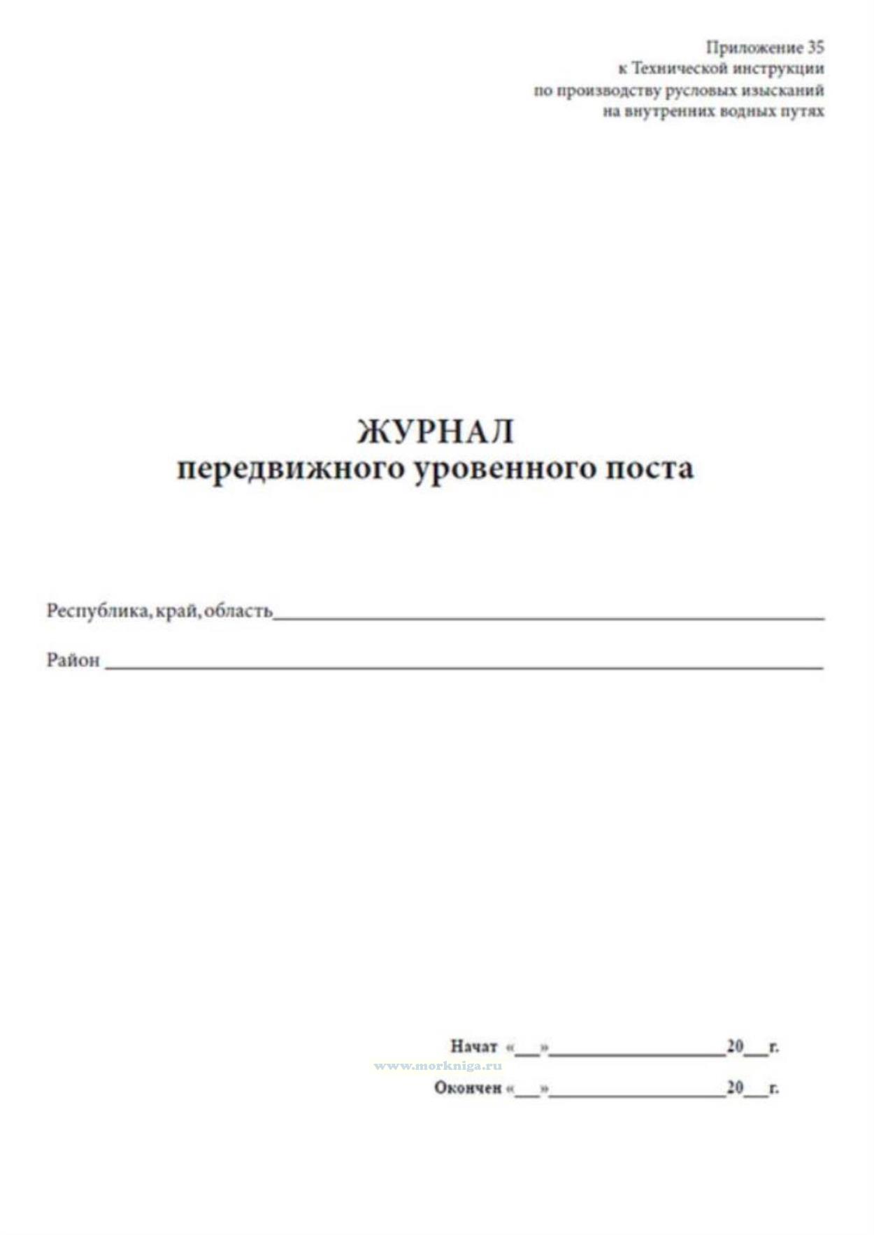 Форма журнала передвижного уровенного поста соответствует приложению №35 к Технической инструкции по производству русловых изысканий на внутренних водных путях.