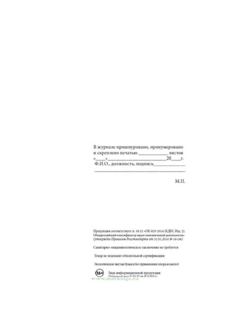 Журнал передвижного уровенного поста (Формат А5) содержит графы: