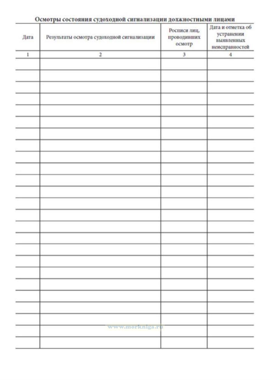 Форма журнала работы и осмотра судоходной сигнализации соответствует приложению 2 к Инструкции по устройству и содержанию судоходной сигнализации на железнодорожных мостах.