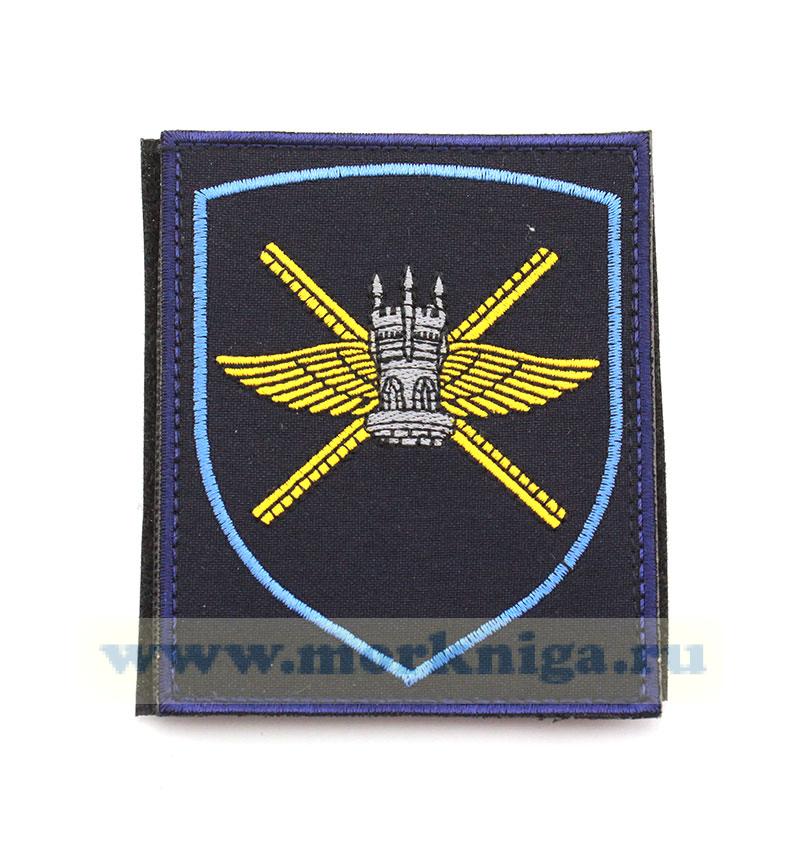 Нашивка вышитая нарукавная части ВВС (Ласточкино гнездо) прямоугольной формы, фон темно-синий, кант голубой. Размер: длина 10 см, ширина 8,5 см.