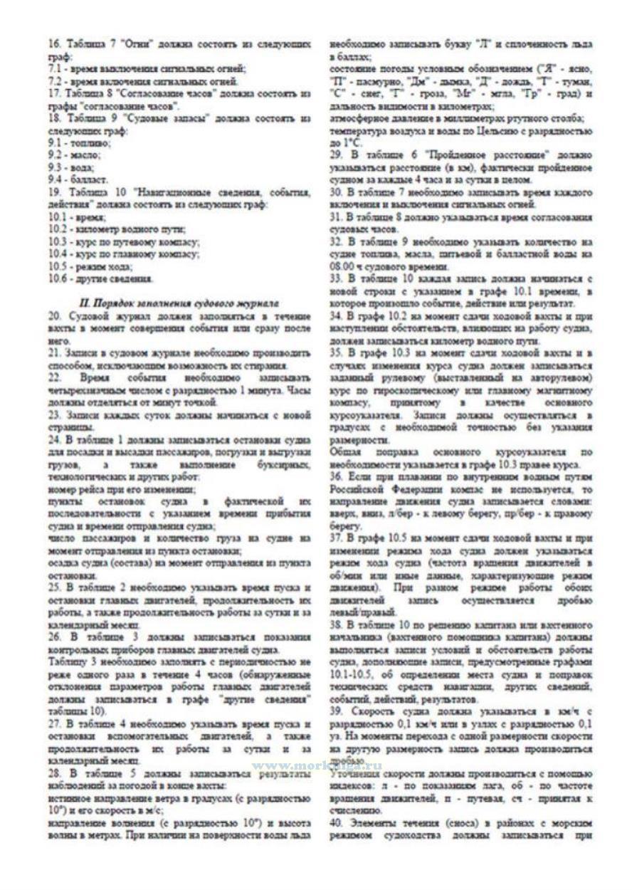 Листы судового журнала должны содержать следующие таблицы: