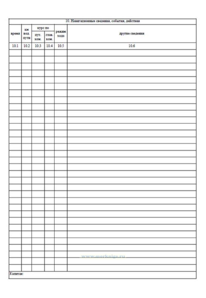 таблица 10 "Навигационные сведения, события, действия".