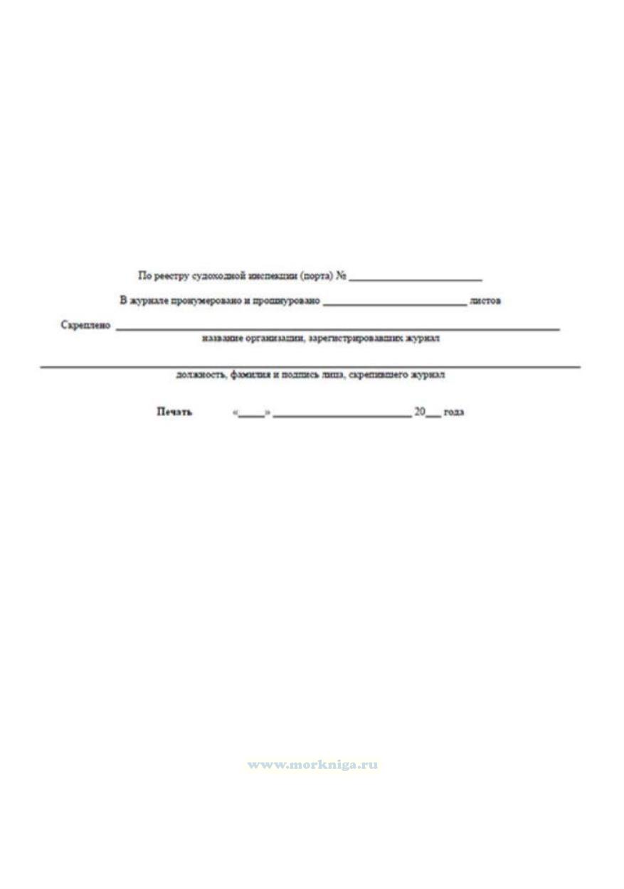 Судовой журнал подлежит учету капитаном бассейна внутренних водных путей Российской Федерации. Все листы в судовом журнале должны быть пронумерованы, прошнурованы и скреплены на последней странице печатью капитана бассейна внутренних водных путей Российской Федерации.