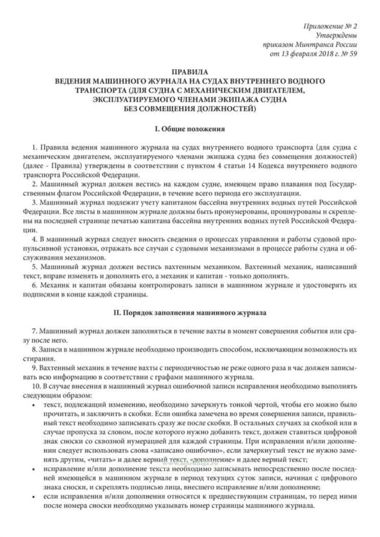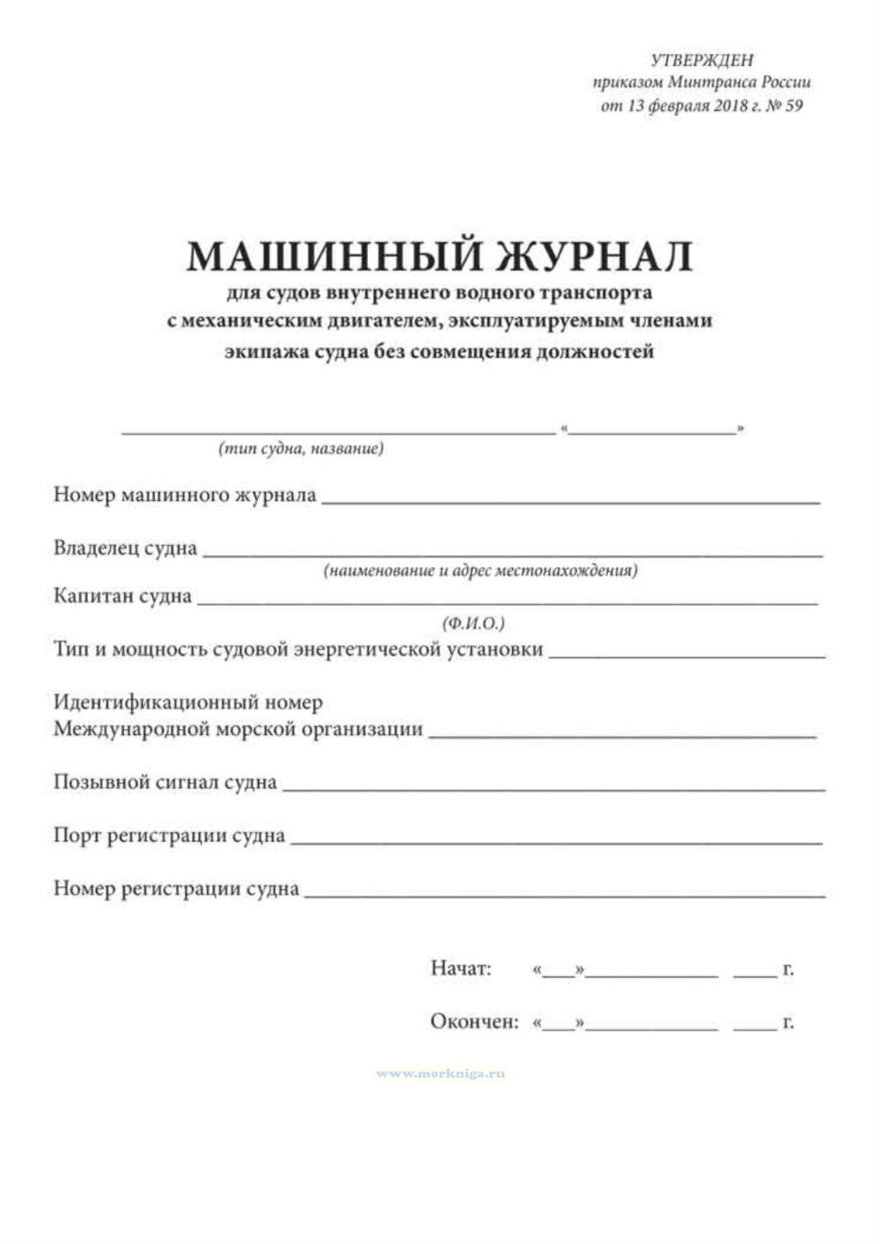 Машинный журнал подлежит учету капитаном бассейна внутренних водных путей Российской Федерации.
