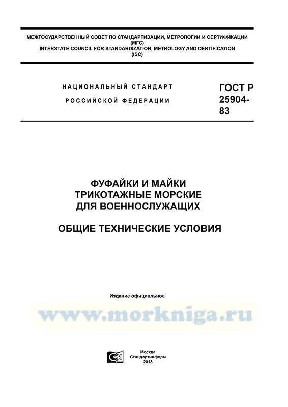 ГОСТ 25904-83 "Фуфайки и майки трикотажные морские для военнослужащих. Общие технические условия" утвержден и введен в действие Постановлением Государственного комитета СССР по стандартам от 23 августа 1983 г. №3929