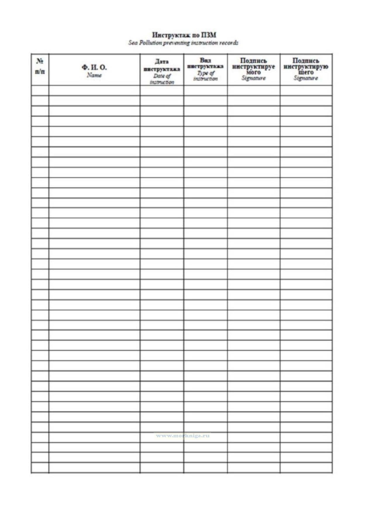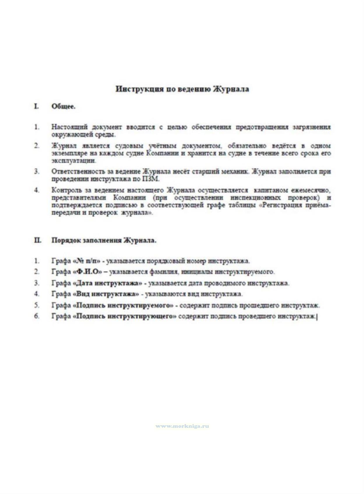3. Ответственность за ведение журнала несёт старший механик. Журнал заполняется при проведении инструктажа по ПЗМ.
