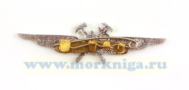 Нагрудный знак офицерского, инженерного и технического состава ВВС представляет собой изображение развернутых крыльев, посередине которых расположены скрещенные раздвижной ключ и молоток, и пятиконечная звезда рубиново-красного цвета.