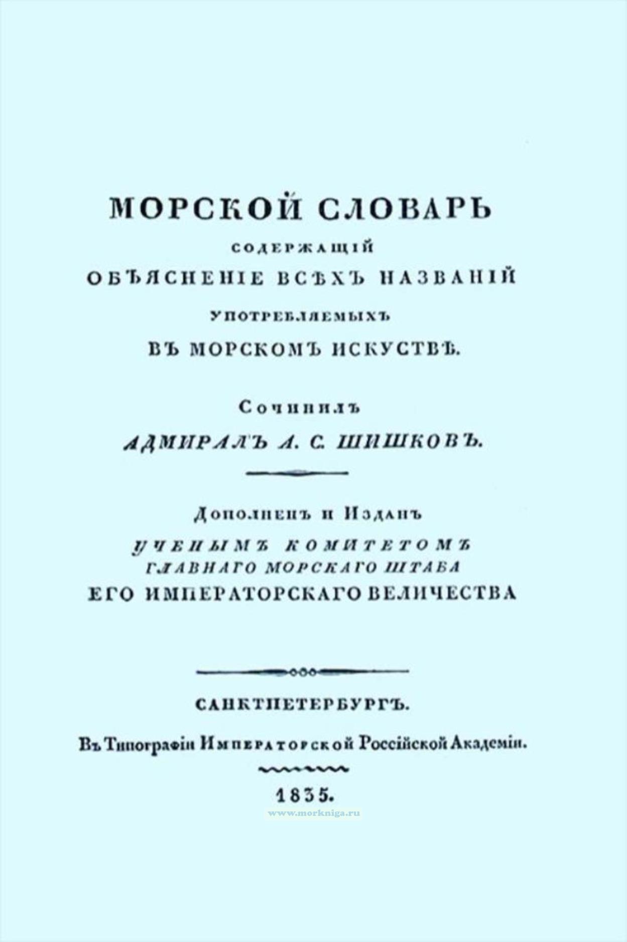 Словарь по Наукам до Мореплавания относящимся, служащие во флоте и другие просвещенные читатели, конечно увидят с удовольствием, особенно потому, что такого Словаря еще не было на Российском языке.