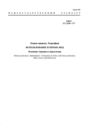 "Охрана природы. Гидросфера. Использование и охрана вод. Основные термины и определения" утвержден Постановлением Государственного комитета стандартов Совета Министров СССР от 16 сентября 1977 г. N 2237