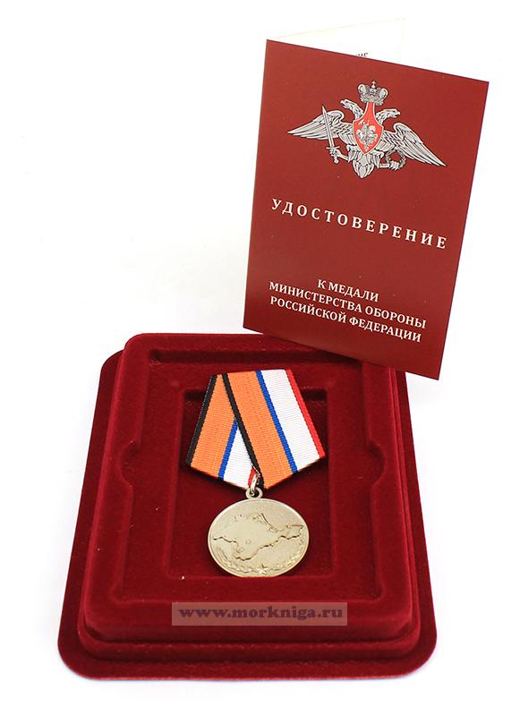 Лицевую сторону награды занимает изображение Крыма, украшенного лавровым венком и пятиконечной звездой. На центральную часть оборотной стороны нанесена эмблема ВС России, ниже которой исполнена надпись-посвящение и памятные даты «За возвращение Крыма 20.02.14 - 18.03.14».