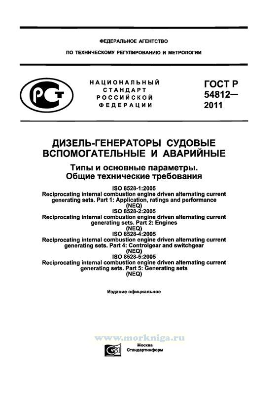 ГОСТ Р 54812-2011 "Дизель-генераторы судовые вспомогательные и аварийные. Типы и основные параметры. Общие технические требования" утв. и введен в действие Приказом Федерального агентства по техническому регулированию и метрологии от 13 декабря 2011 г. N 1180-ст.