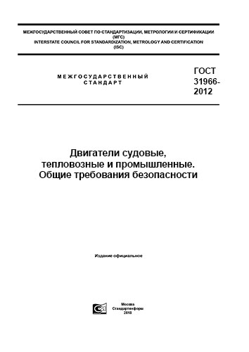 Стандарт распространяется на судовые, тепловозные и промышленные поршневые двигатели внутреннего сгорания, работающие на жидком и/или газообразном топливе, и устанавливает общие требования их безопасности.