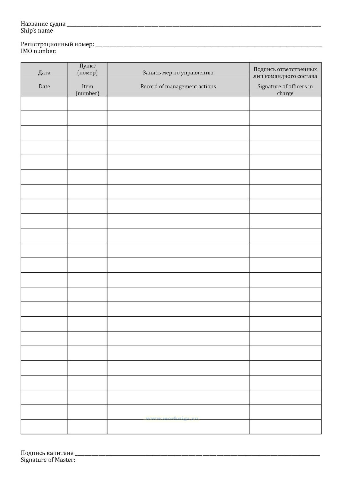 e. Имя, должность и подпись лица, ответственного за операции в отношении судна.