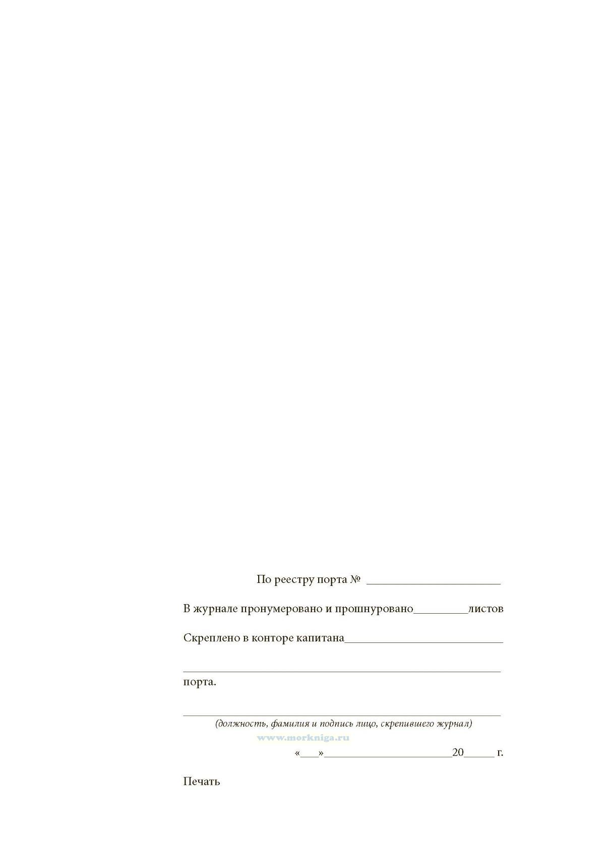 В Журнале проверок биообрастания должна регистрироваться следующая информация: