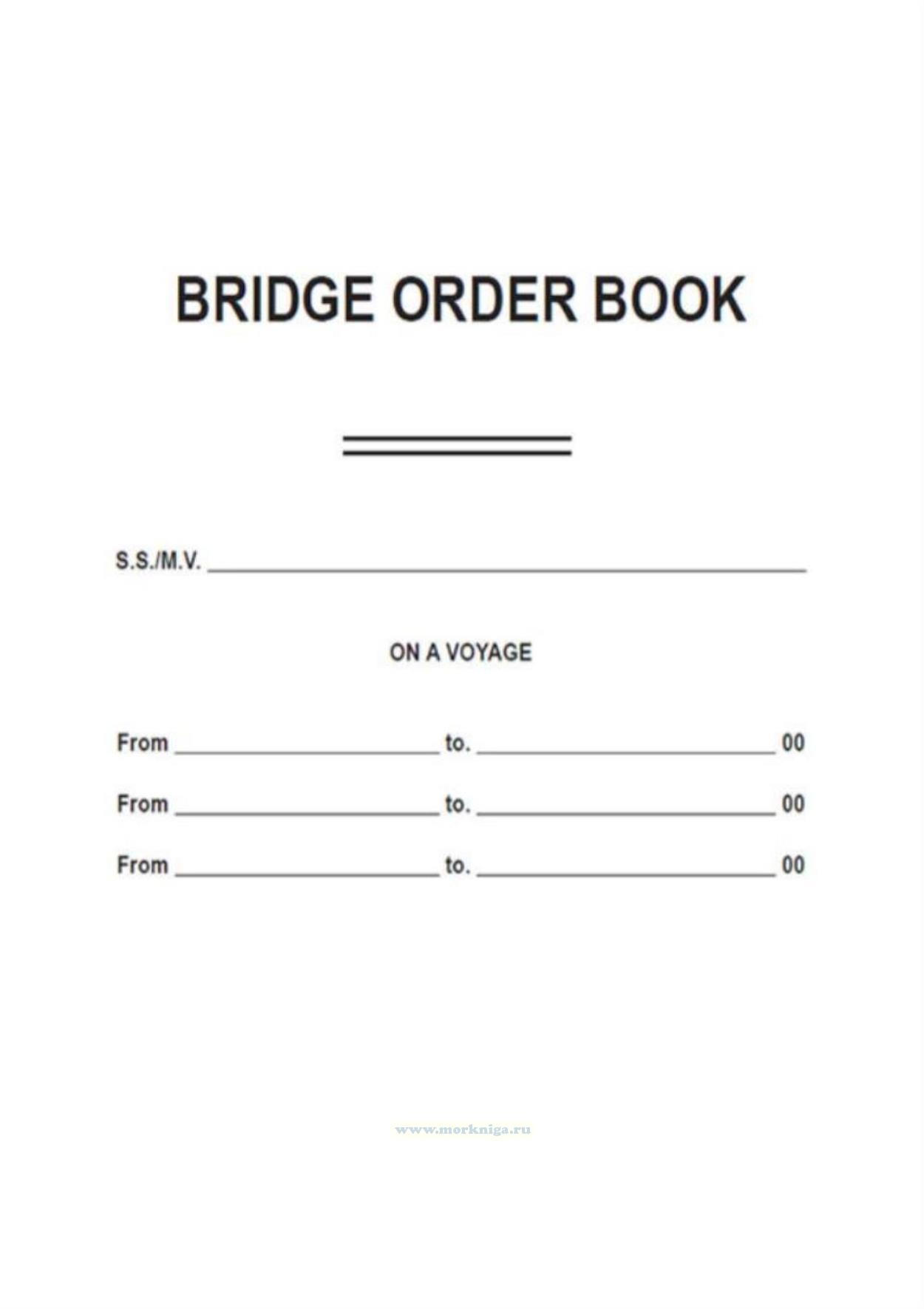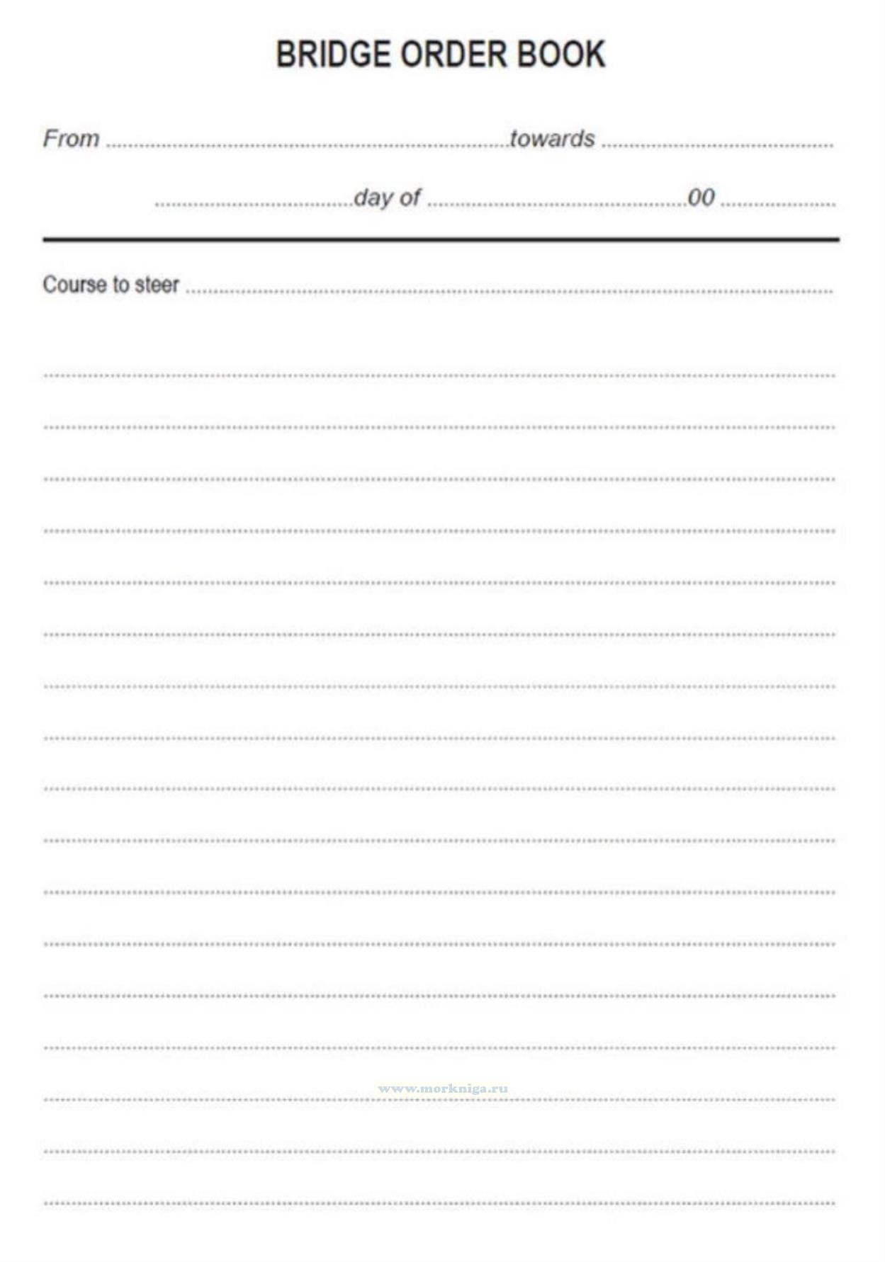 Bridge Order Book на английском языке, также в продаже есть Журнал распоряжений капитана на ночную вахту (Bridge night orders book), выполненный на русском языке и Журнал распоряжений на мостике (Bridge Order Book) на двух языках (русском и английском).