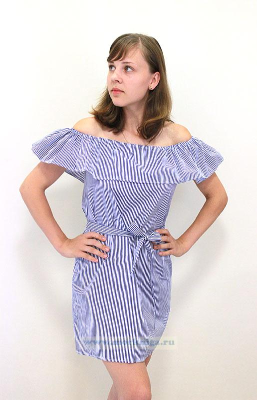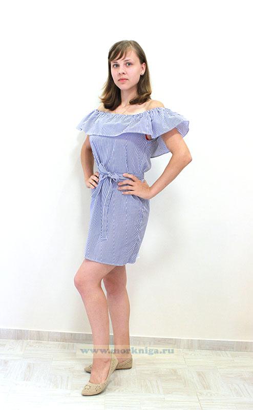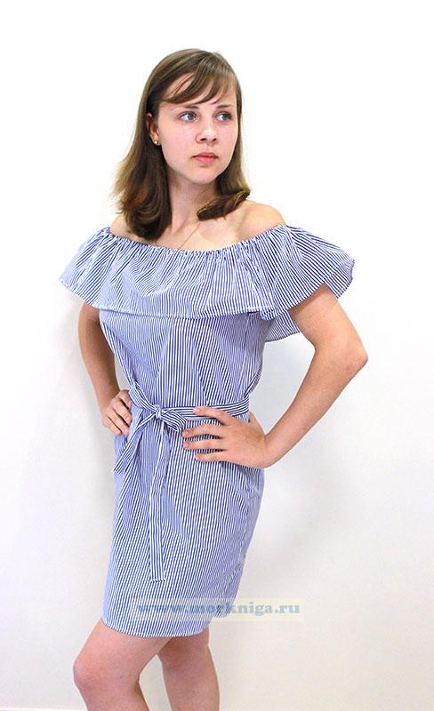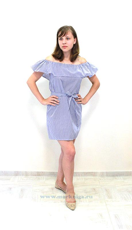 Платье в полоску с открытыми плечами "Подруга моряка" - тренд летнего сезона, идеально садится на любую фигуру, независимо от возраста и телосложения. Тонкий пояс позволит подчеркнуть талию.