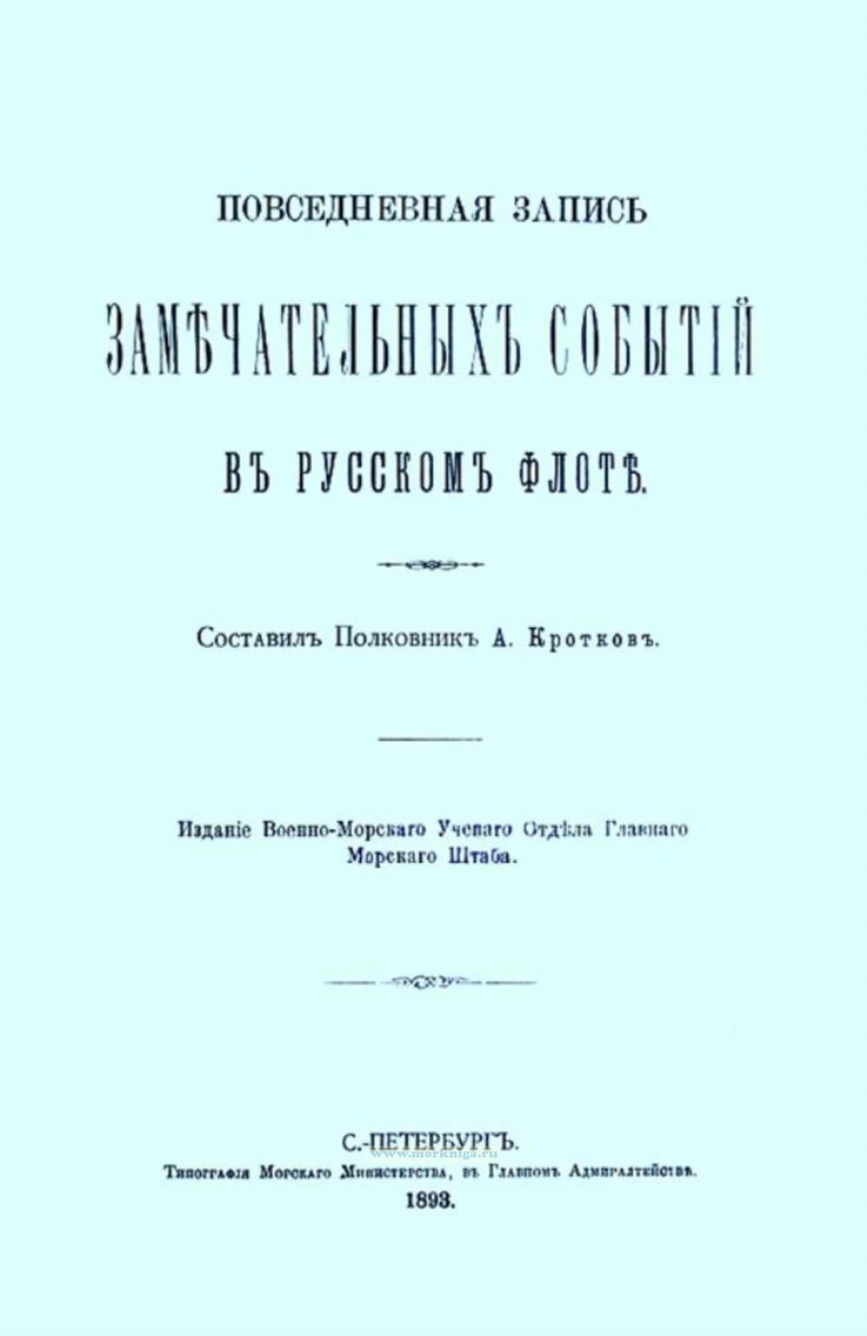 С целью содействовать распространению знаний было предпринять настоящий труд - составить повседневную запись важнейших событий в русском флоте в хронологическом и синхроническом порядке.