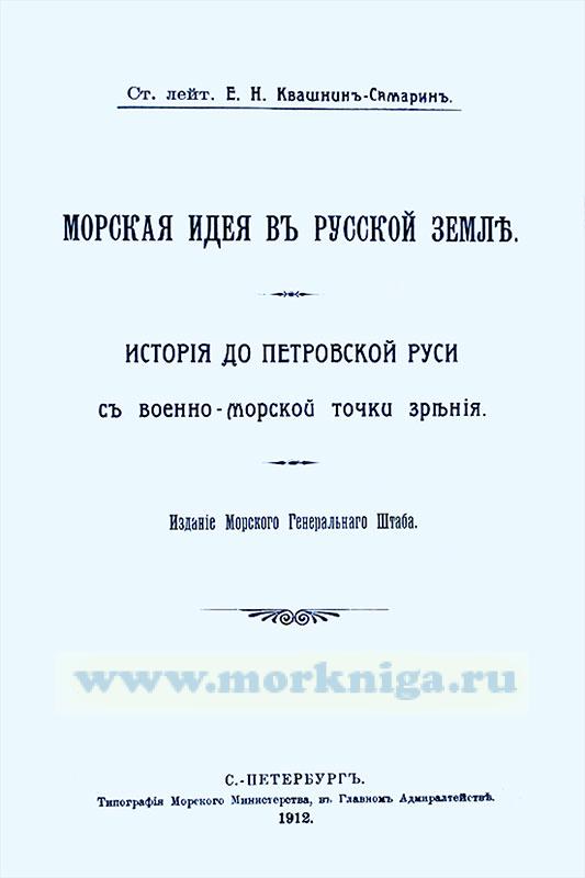 Книга "Морская идея в русской земле. История до Петровской Руси с военно-морской точки зрения" Евдокима Николаевича Квашнин-Самарина (1877-1920) - старшего лейтенанта флота, морского историка.