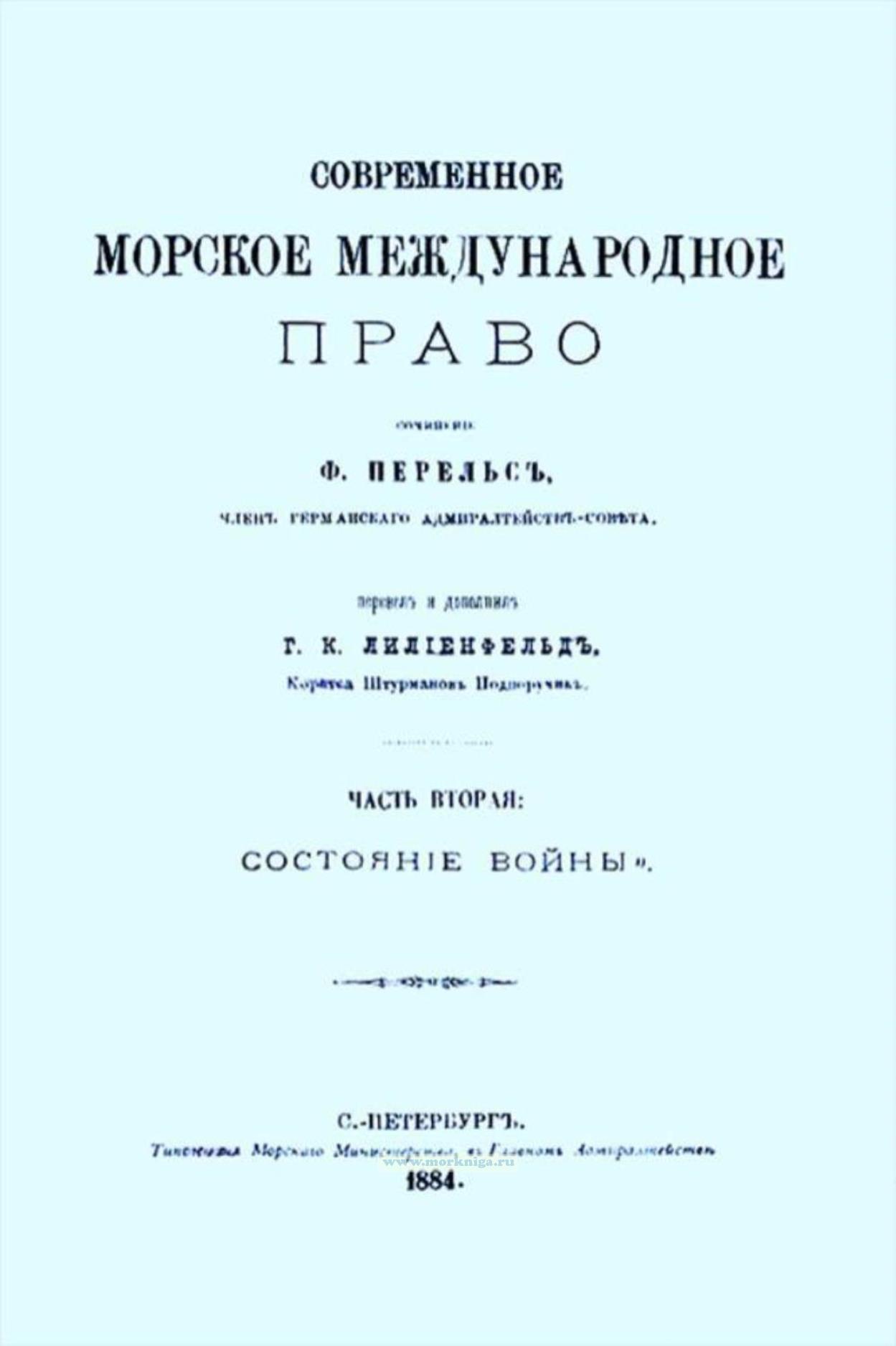 3) Что почти все приложения к оригиналу второй части сочинения Перельс выпущены нами, так как не имеют особенного интереса для русских читателей. Взамен этих приложений мы поместили от себя множество актов, казавшихся нам существенно необходимыми для морских офицеров.