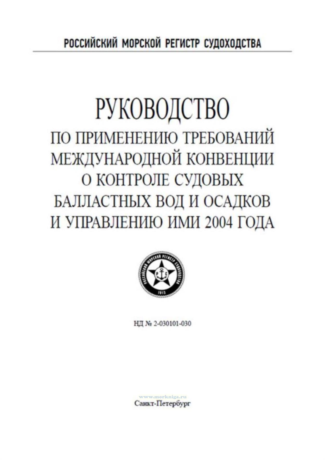 Руководство по применению требований Международной конвенции о контроле судовых балластных вод и осадков и управлению ими 2004 года утверждено в соответствии с действующим положением и вступает в силу с момента опубликования.
